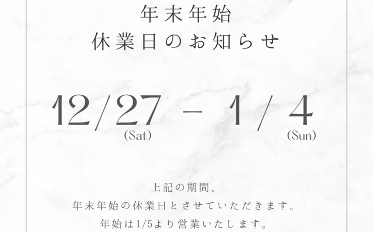 年末年始休業日のお知らせ